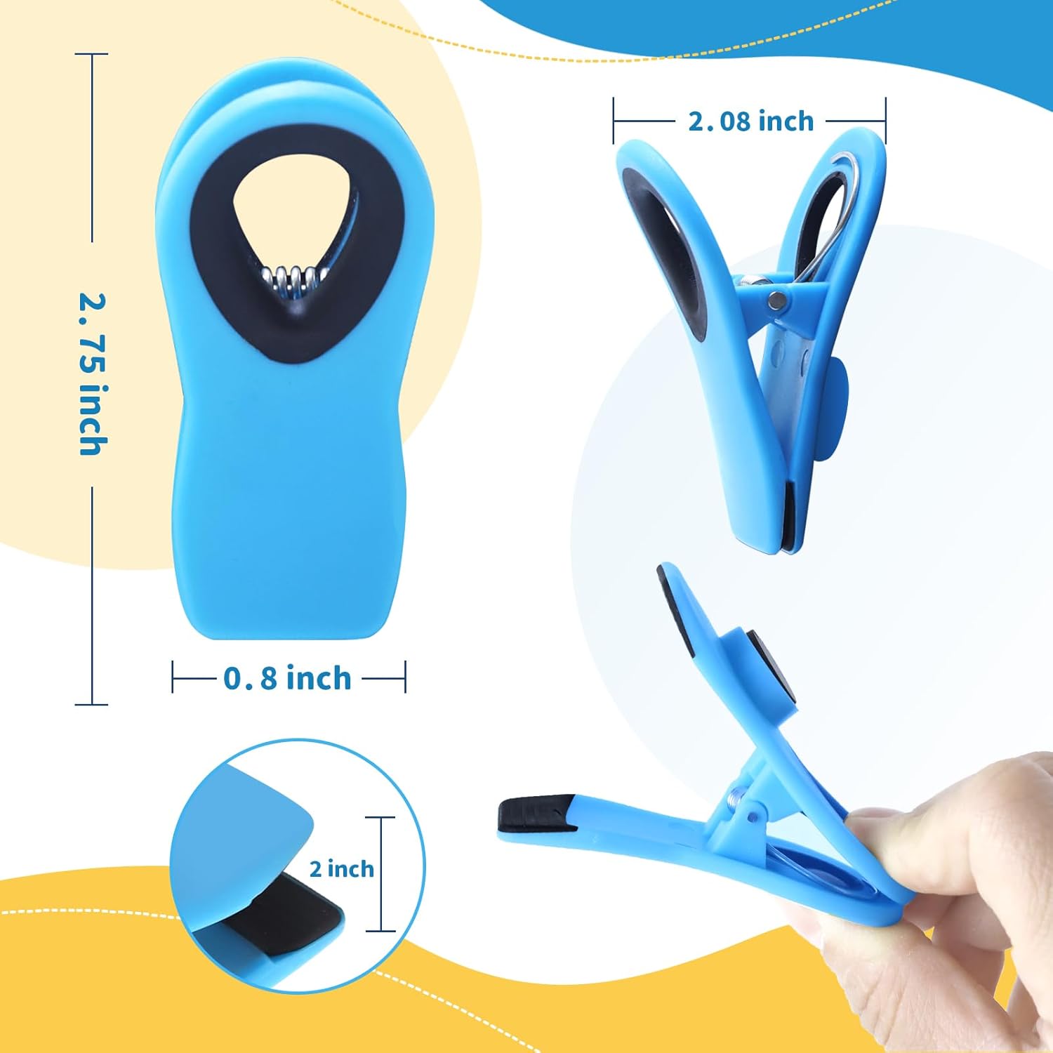 Our chip bag clips blend convenience with style! Vibrant colors add personality while securely sealing chip, veggie, and other food bags to keep contents fresh. Magnetic backs stick to fridges/lockers for notes/photos; hang on hooks for easy access and space-saving. Durable, easy-to-use design makes them a daily essential for kitchens, pantries, or anywhere you need to seal and organize.