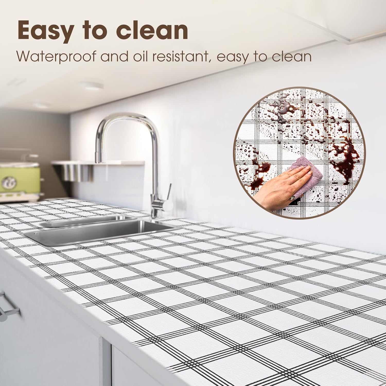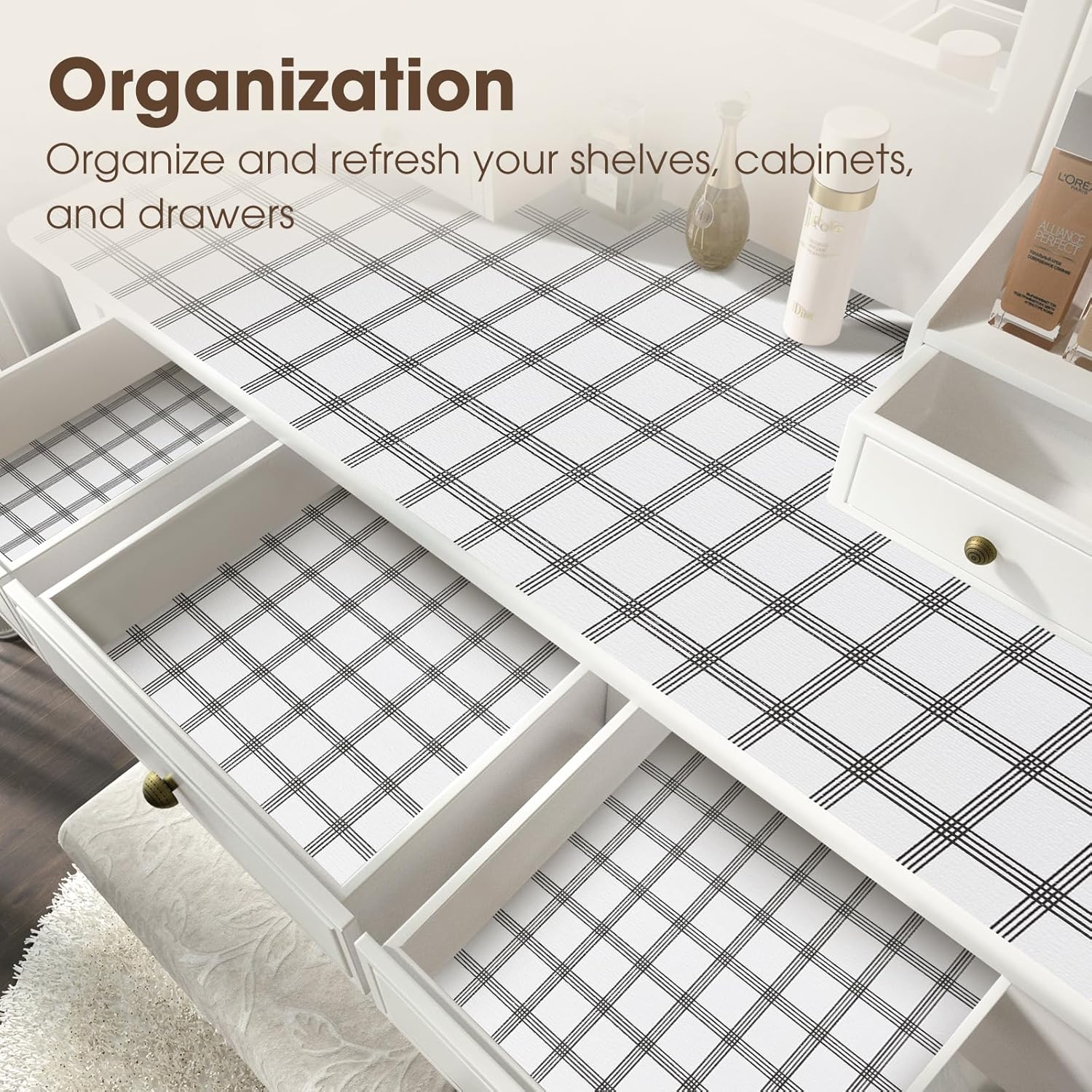 ALIUNI Drawer and Shelf Liner, Non-Slip Kitchen Cabinet Liners Non-Adhesive Thick Strong Grip Waterproof Washable Mats Protect Dresser Shelves Cupboard Bathroom Cabinets, White Stripes, 12 in X 10 FT