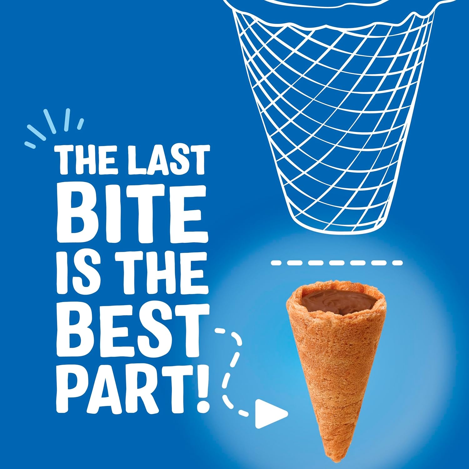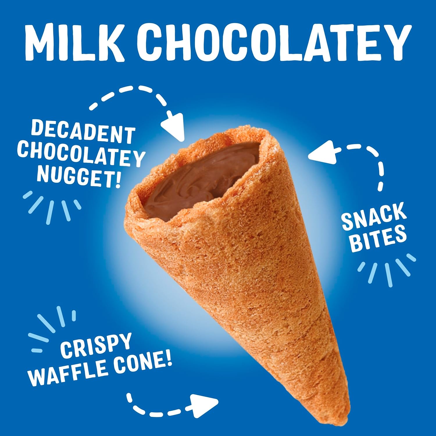 - LITTLE BITES. BIG FLAVORS Each bite of fun size Milk Chocolatey Waffle Cone Snacks has everyone's favorite part of the original sundae cone, the iconic chocolatey nugget at the bottom. Perfectly snackable, shareable sweet treat and sized just right