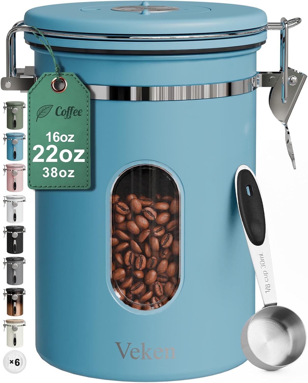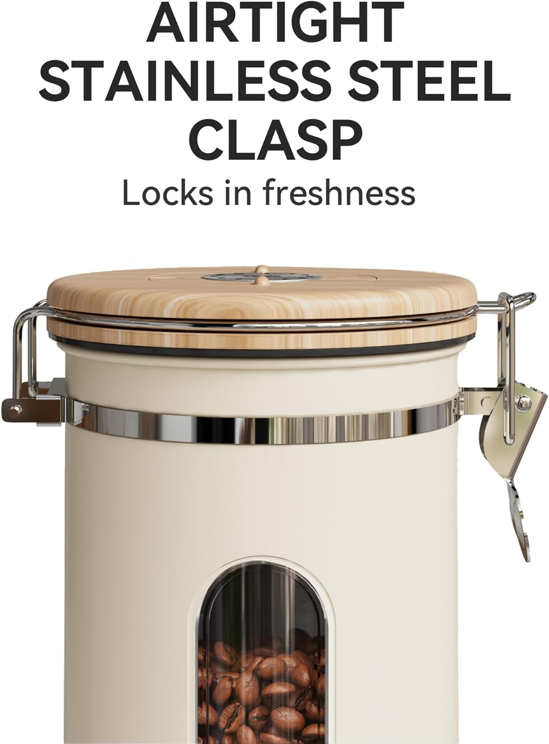 Veken Coffee Sugar Canister with Window, Coffee Lover Gift Set,Airtight Stainless Steel Kitchen Food Storage Container Gifts, Date Tracker & Scoop for Grounds Coffee,Beans,Tea,Flour,Cereal,22OZ,Cream